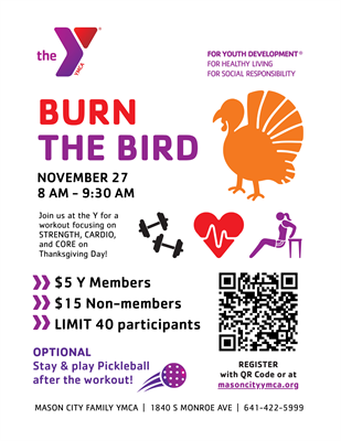 Thursday, November 27 MASON CITY FAMILY YMCA - $5 for Y Members