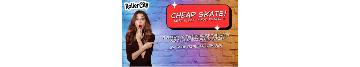 Back by popular demand, a midweek skating session at a discounted price! Come to Roller City on Thursday – November 13th to enjoy $5 admission and $3 skate rental! Skate from 5 PM to 9 PM. Buy a child admission, get an adult admission free! Plus, enjoy double tickets on arcade games! For more information, visit https://www.facebook.com/events/3133200356847638.